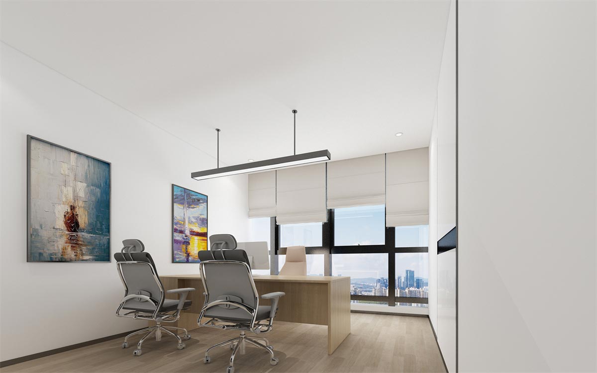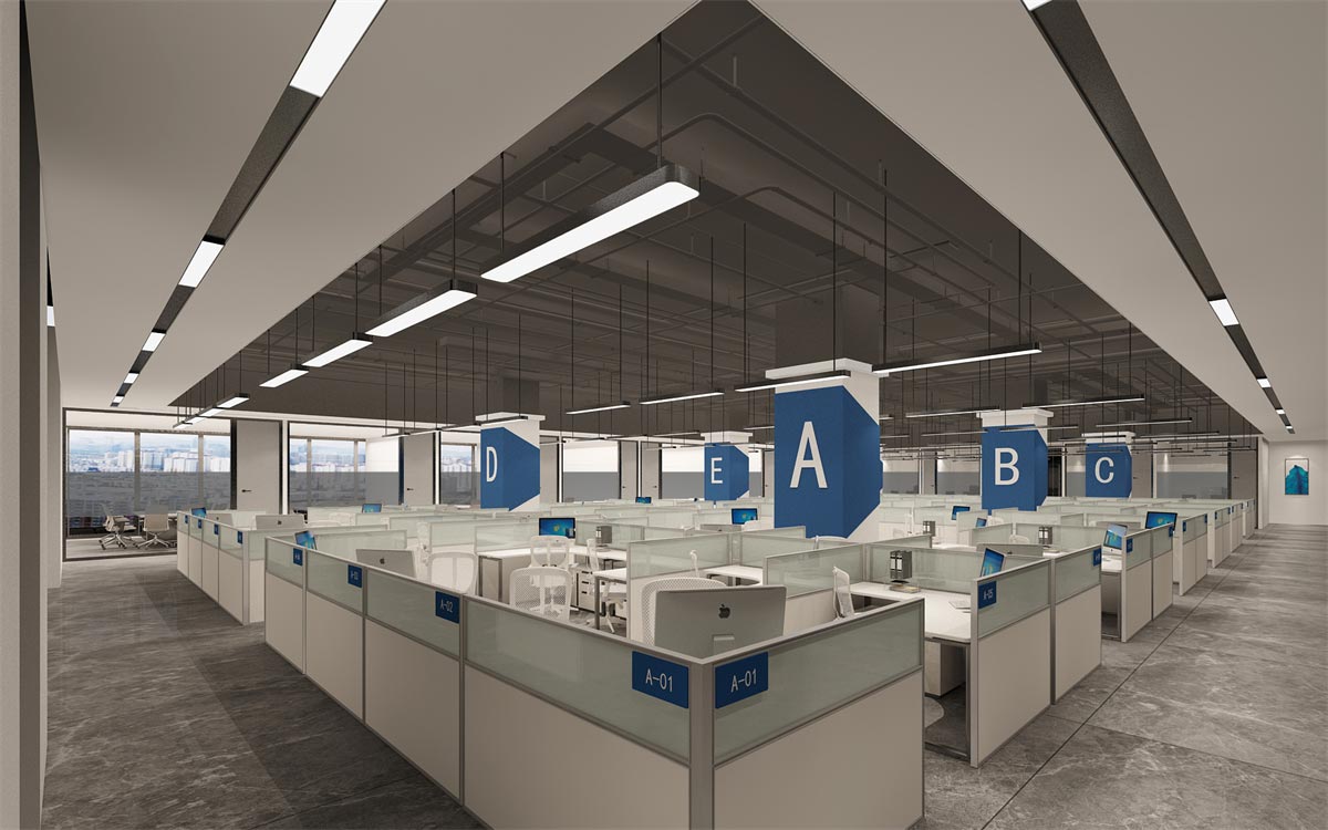 開放辦公區精選半透明隔檔辦桌桌椅套件,保證員工作不受干擾的同時,又不至于阻斷員工間有效的溝通與協作。整體采取整齊合理的區域劃分,確保各部門工作的獨立性和部門間工作的協同性。