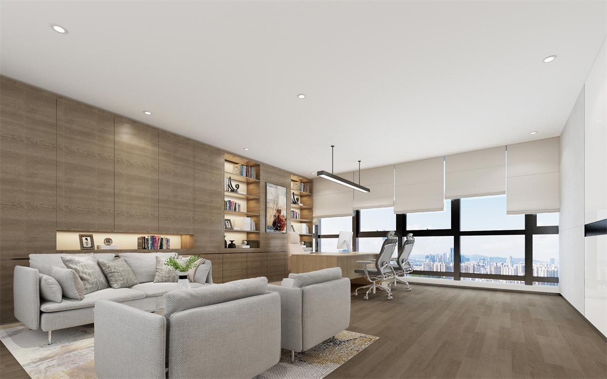 獨立辦公室采用簡約的木紋家具,營造一種輕松的田園極簡風格,打破生物科技公司的拘謹感,但又不失嚴謹,在洽談客戶時,能給客戶帶來輕松愉悅的感受。