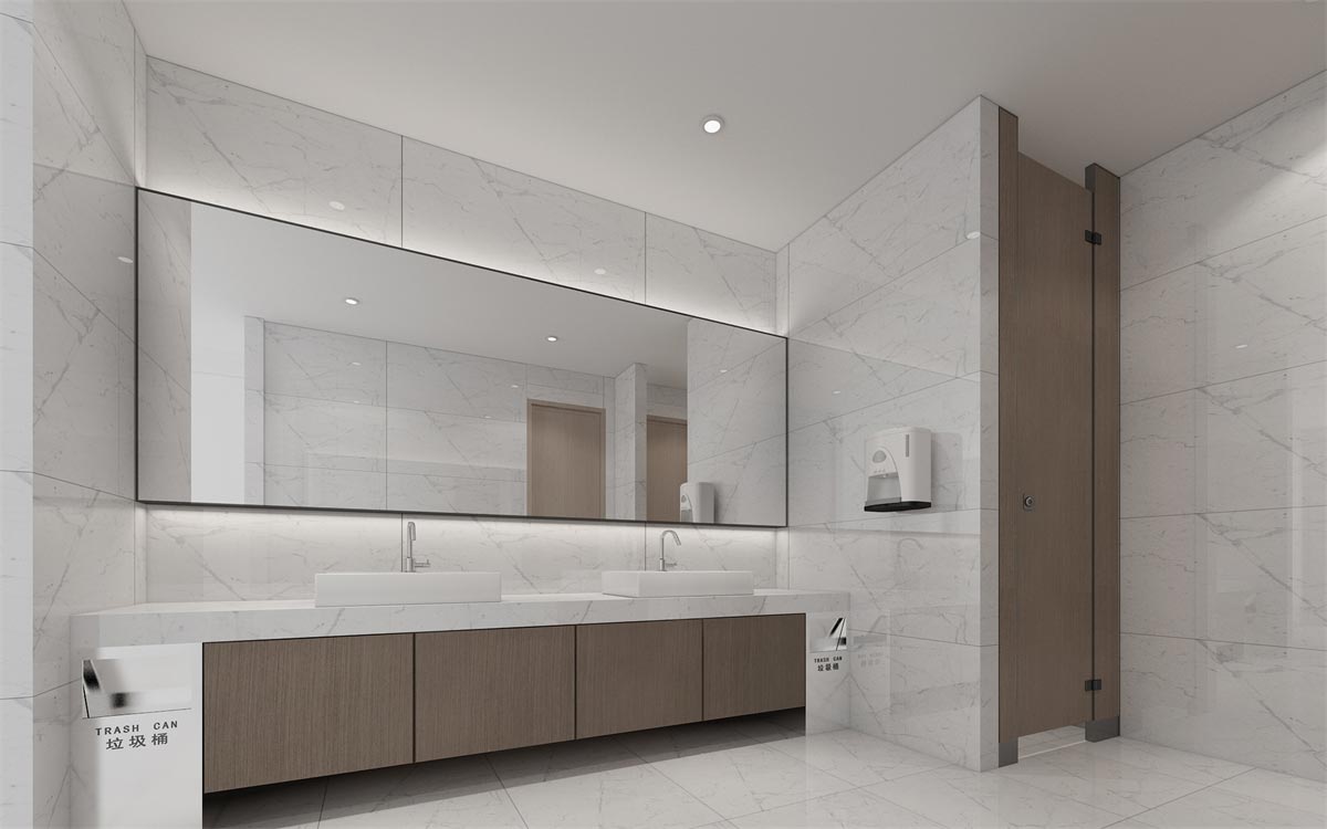 前臺地板和臺面采用透亮的大理石瓷磚,搭配大面積的燈帶吊頂,增加整個空間的通透感,給人清新、光明、安全的舒心感。