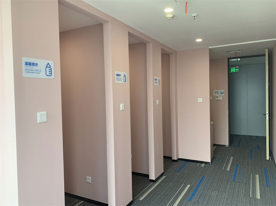 休閑就餐區(qū)采用氛圍大燈烘托,中間是一顆頂梁大樹,桌椅環(huán)樹擺放,開放式的大門,墻面的圓孔造型,以及一側(cè)的通透窗戶,給這個休閑的就餐區(qū)帶來巨大的通透呼吸感,讓就餐環(huán)境變得溫馨舒暢,還有為哺乳期的媽媽貼心的準(zhǔn)備了“育嬰室”。